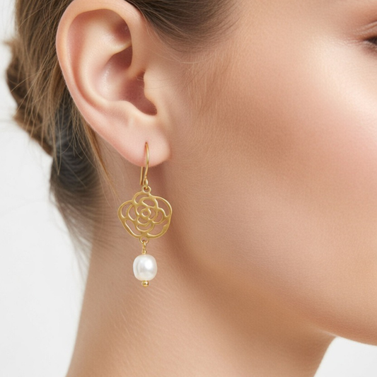 Brincos Rosa com Pérola Barroca Natural Certificada
