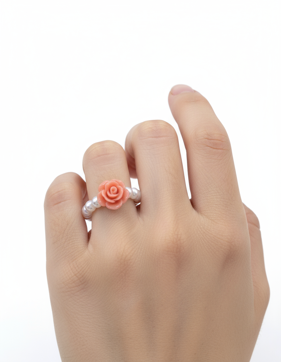 Composto por contas peroladas e uma rosa em acetato na cor coral, traz um visual leve, romântico e elegante, perfeito para complementar qualquer look.