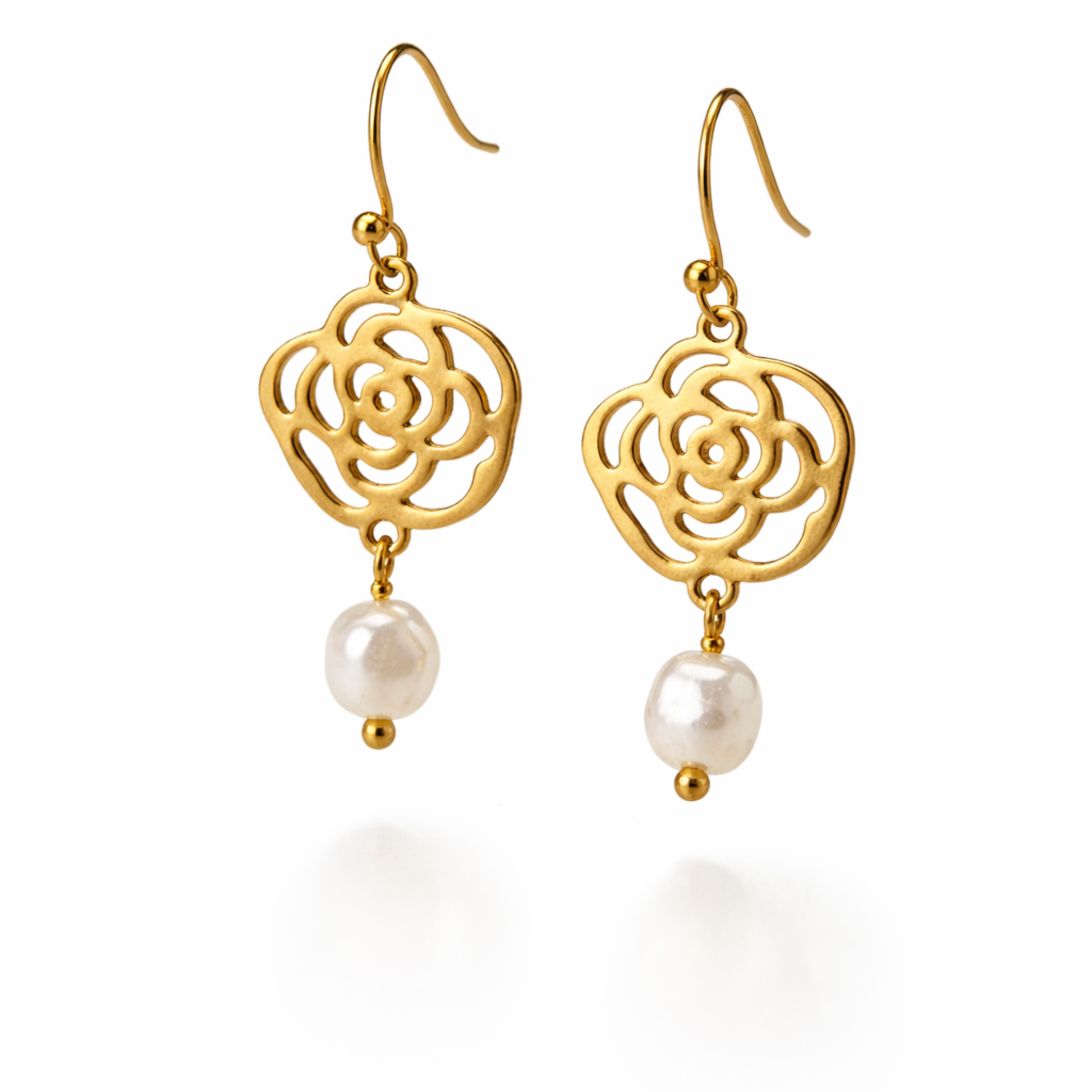 Inspirados na nobreza e delicadeza da Rainha Santa Isabel, estes brincos unem o simbolismo da rosa ao carácter único da pérola barroca natural.