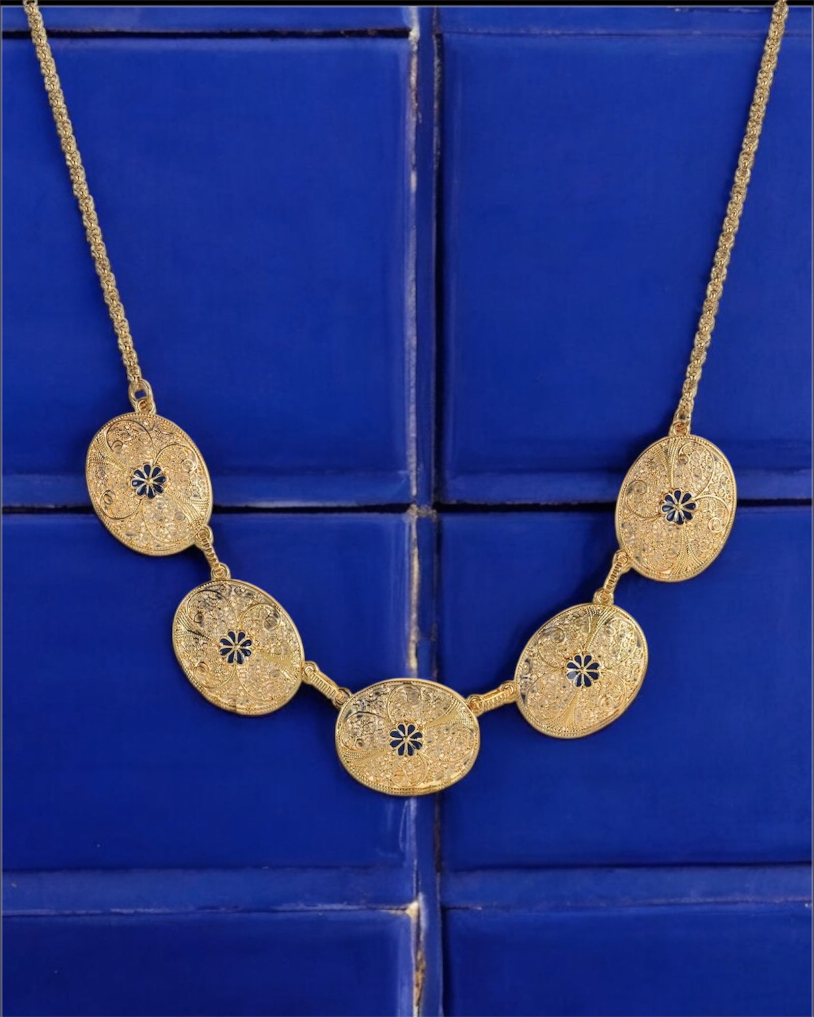 Colar flor em azul real