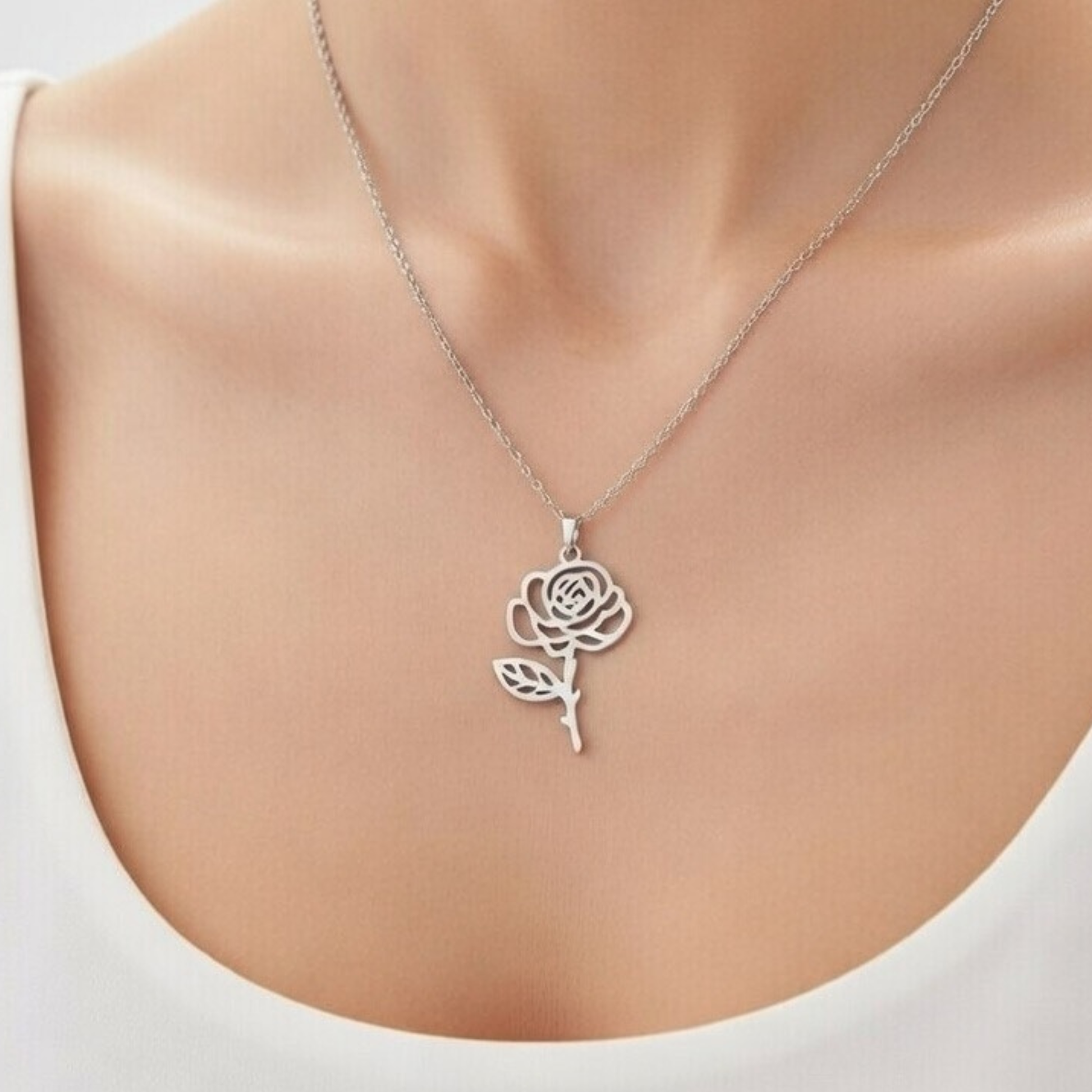 O Colar Rosa Eterna representa amor, feminilidade e renovação. Com um design leve e vazado, a rosa surge reinterpretada de forma contemporânea, simples, elegante e cheia de significado.