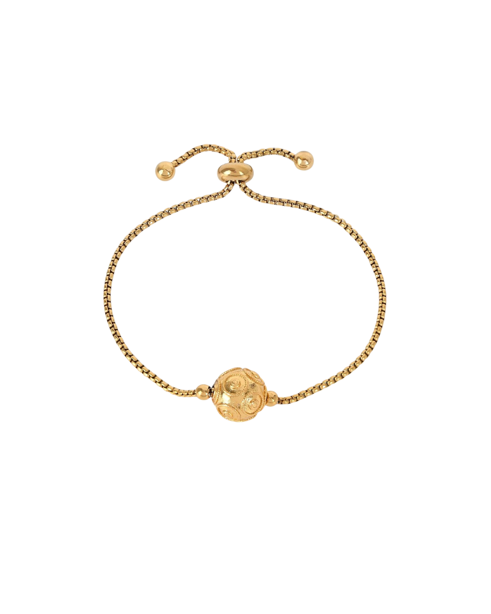 Esta pulseira apresenta a icónica Conta de Viana, símbolo de amor e proteção na ourivesaria portuguesa, reinterpretada num design contemporâneo e minimalista. O fecho ajustável permite um encaixe confortável e elegante, ideal para o uso diário ou para oferecer como presente especial.